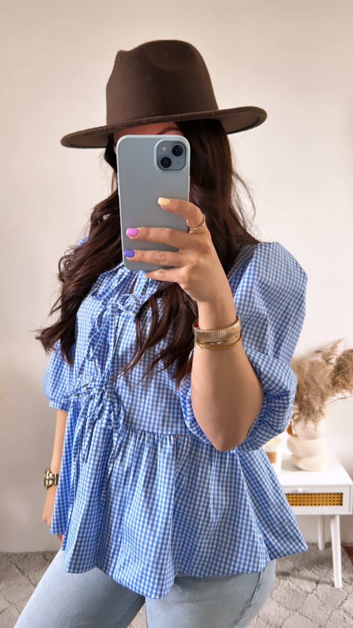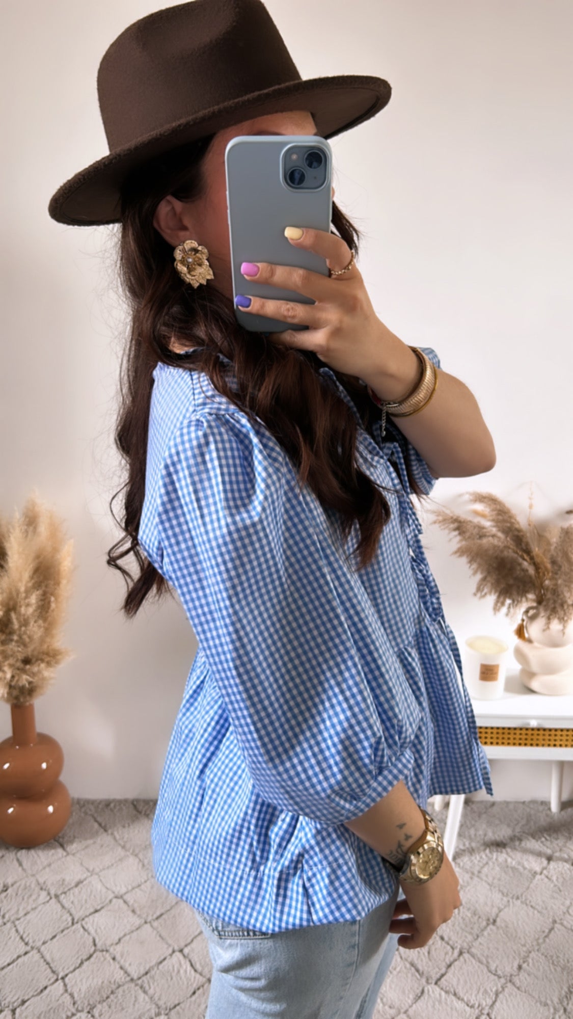 - Imprimé vichy bleu