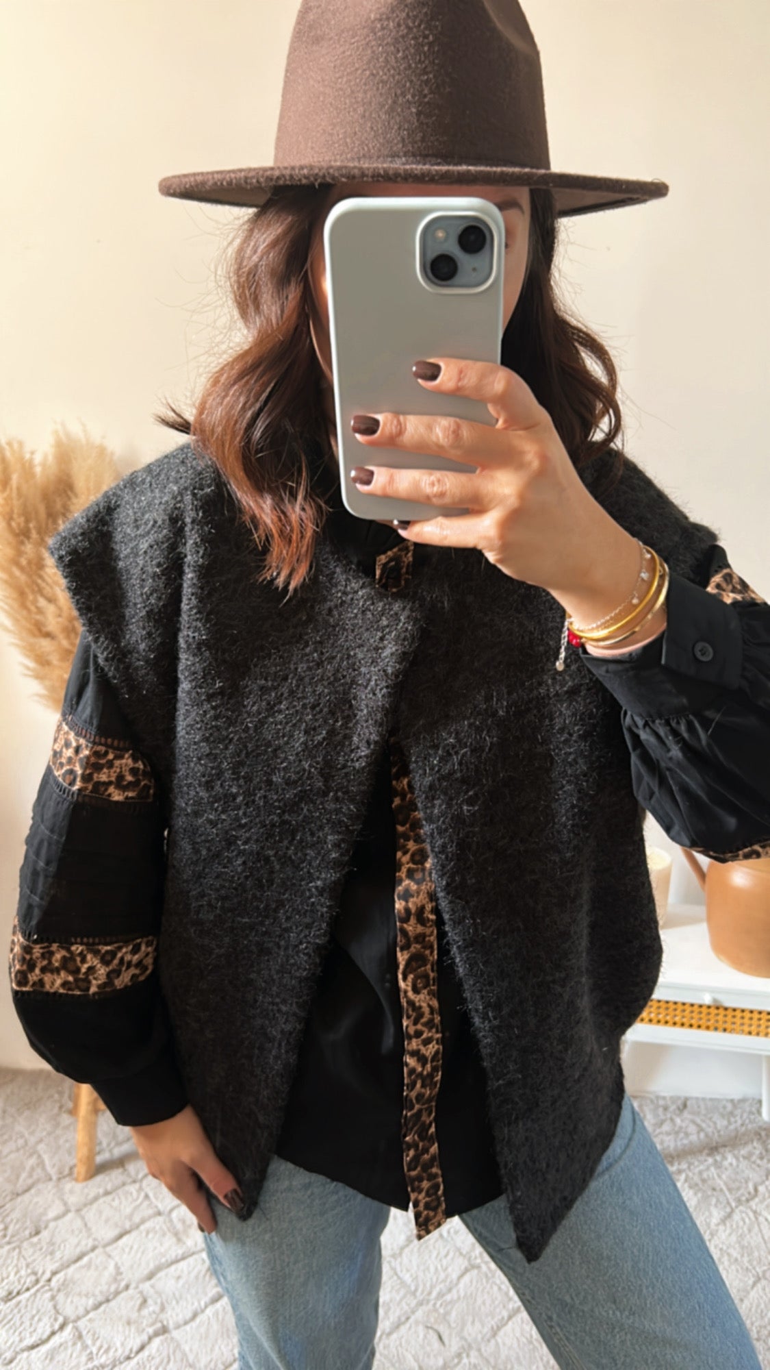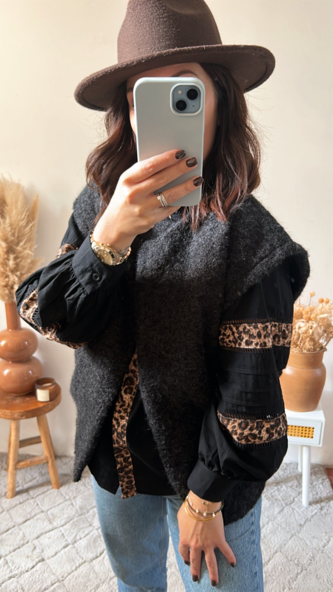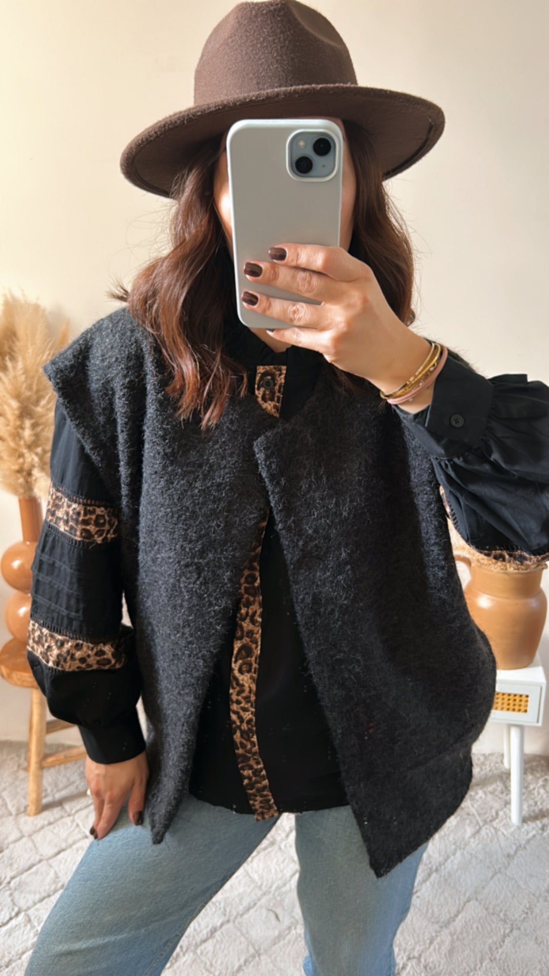 Le gilet MALONE est porté ici avec le chemisier LEON.