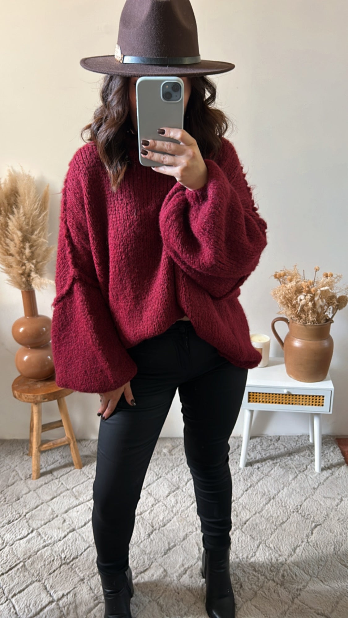 Le pull COZY est porté ici avec la jupe Léo et le jean fourré LENNY.