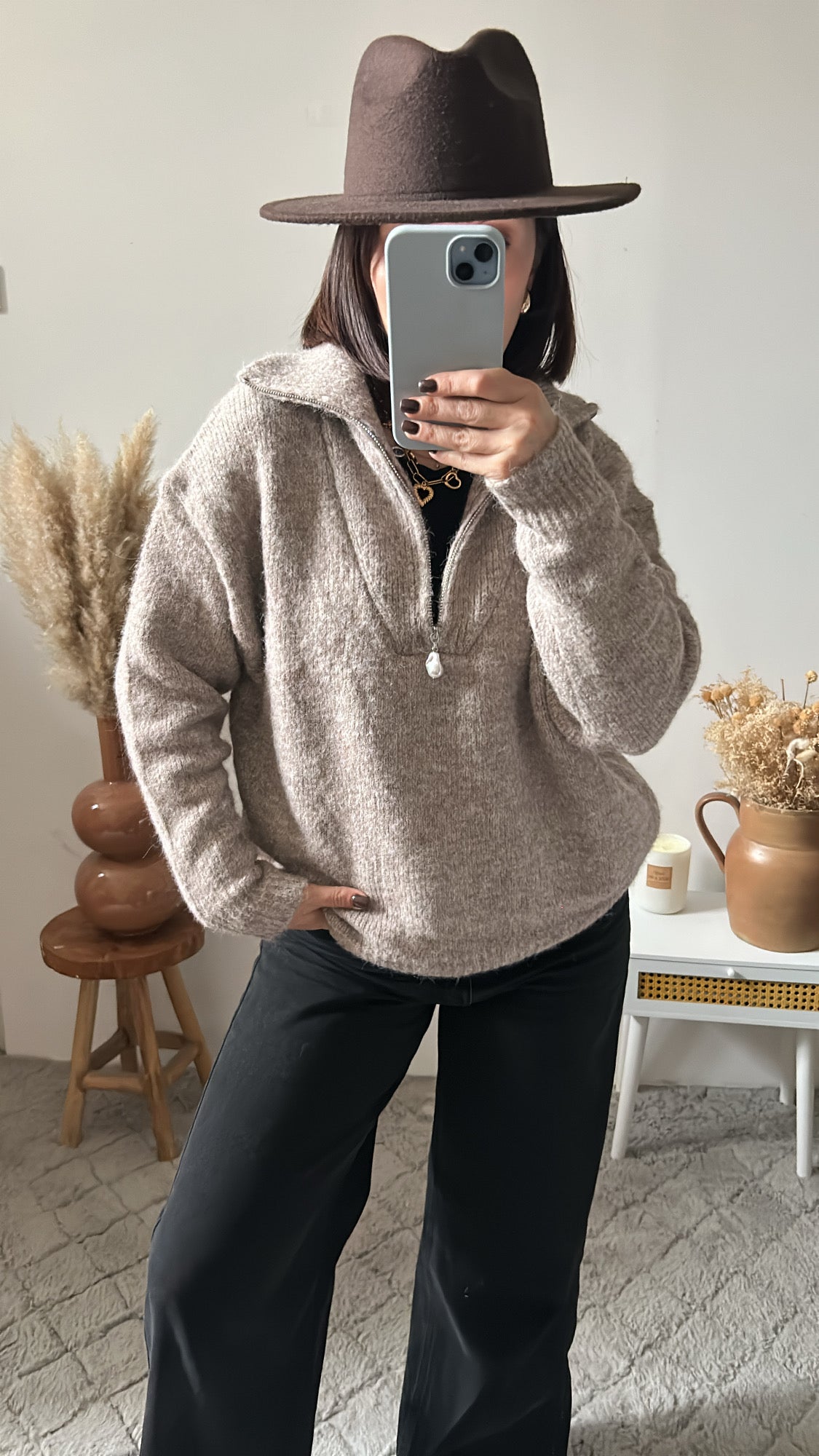 - Couleur: taupe, existe en gris chiné
