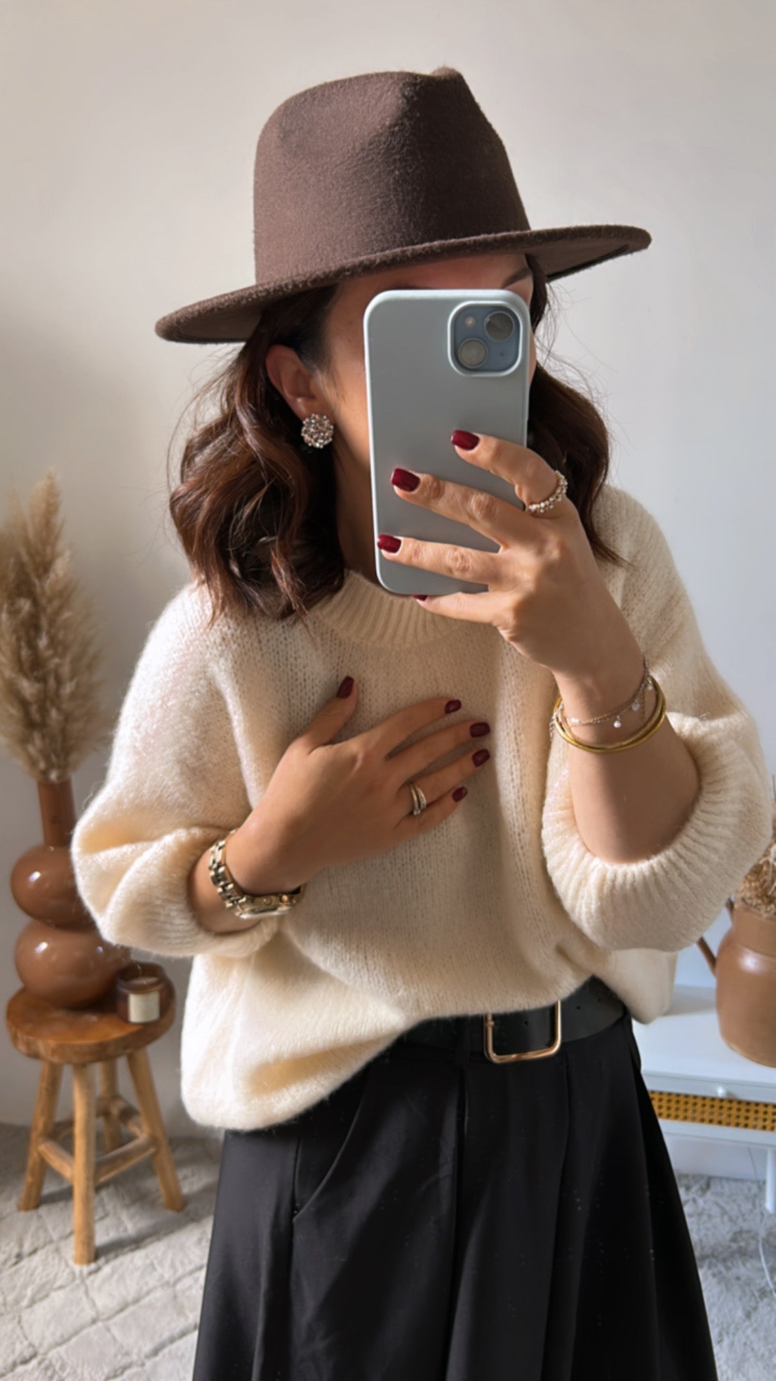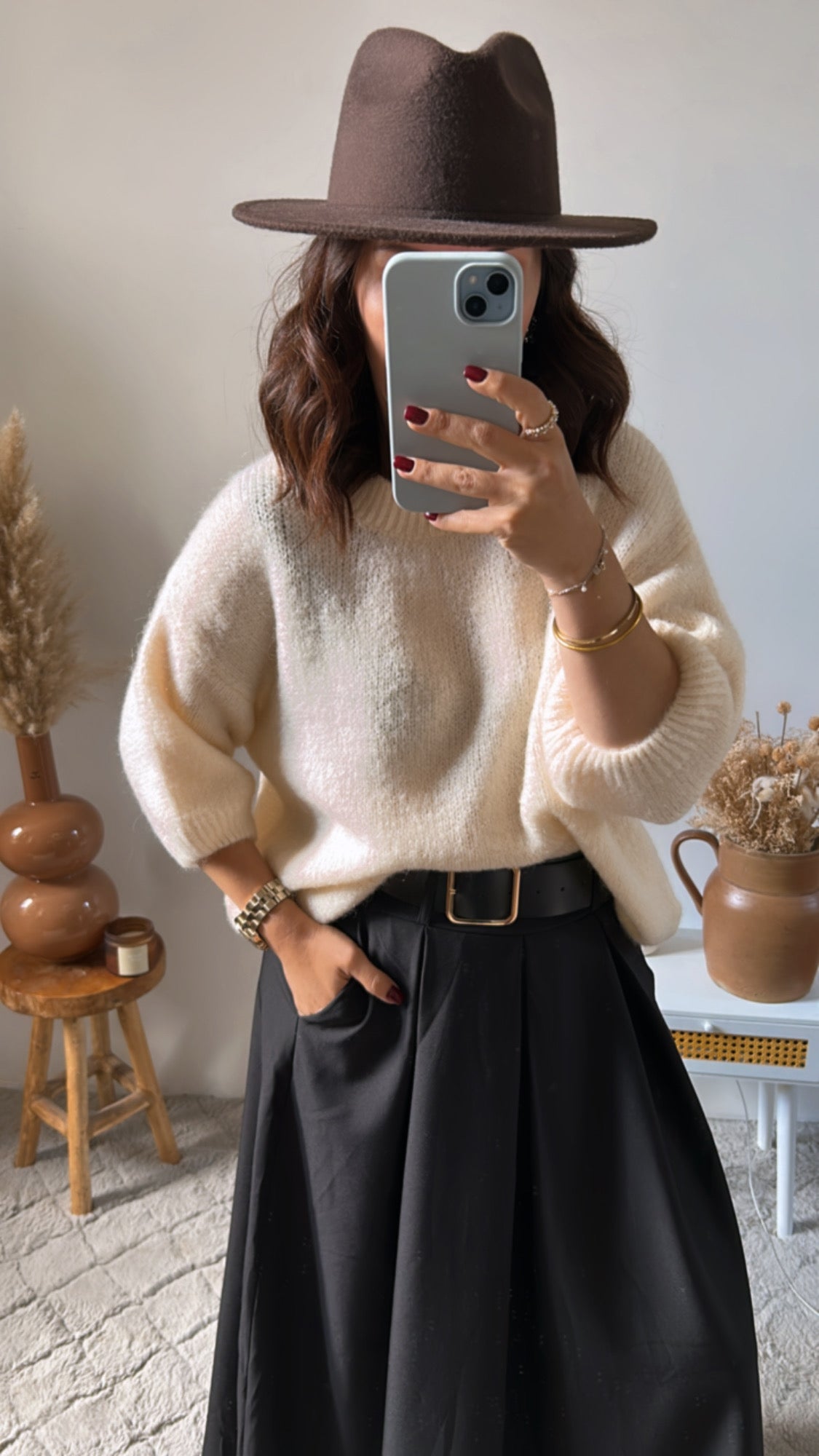 Ici le pull est porté avec le pantalon Elise
