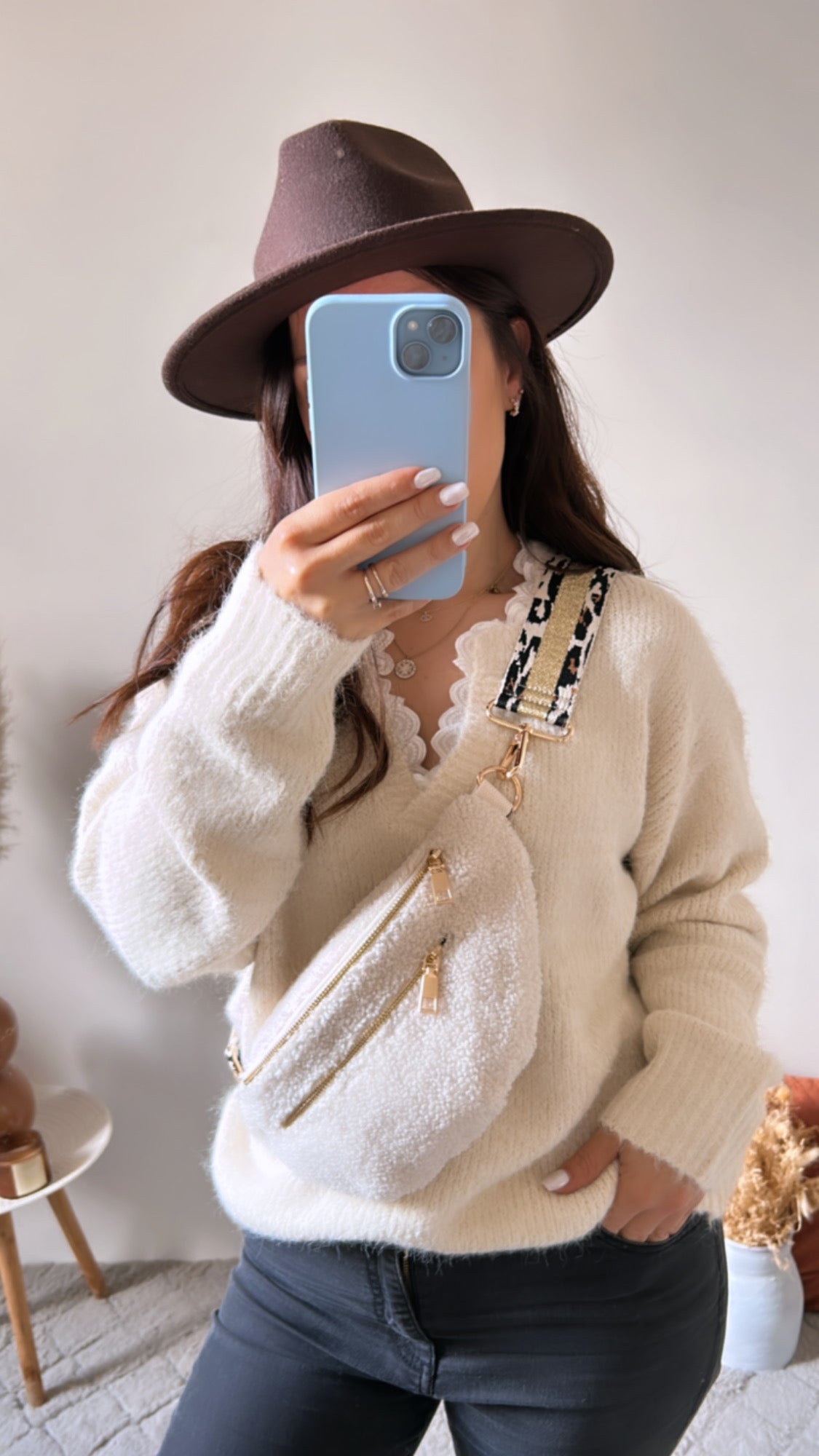 - Ici la banane est portée avec la bandoulière amovible léopard